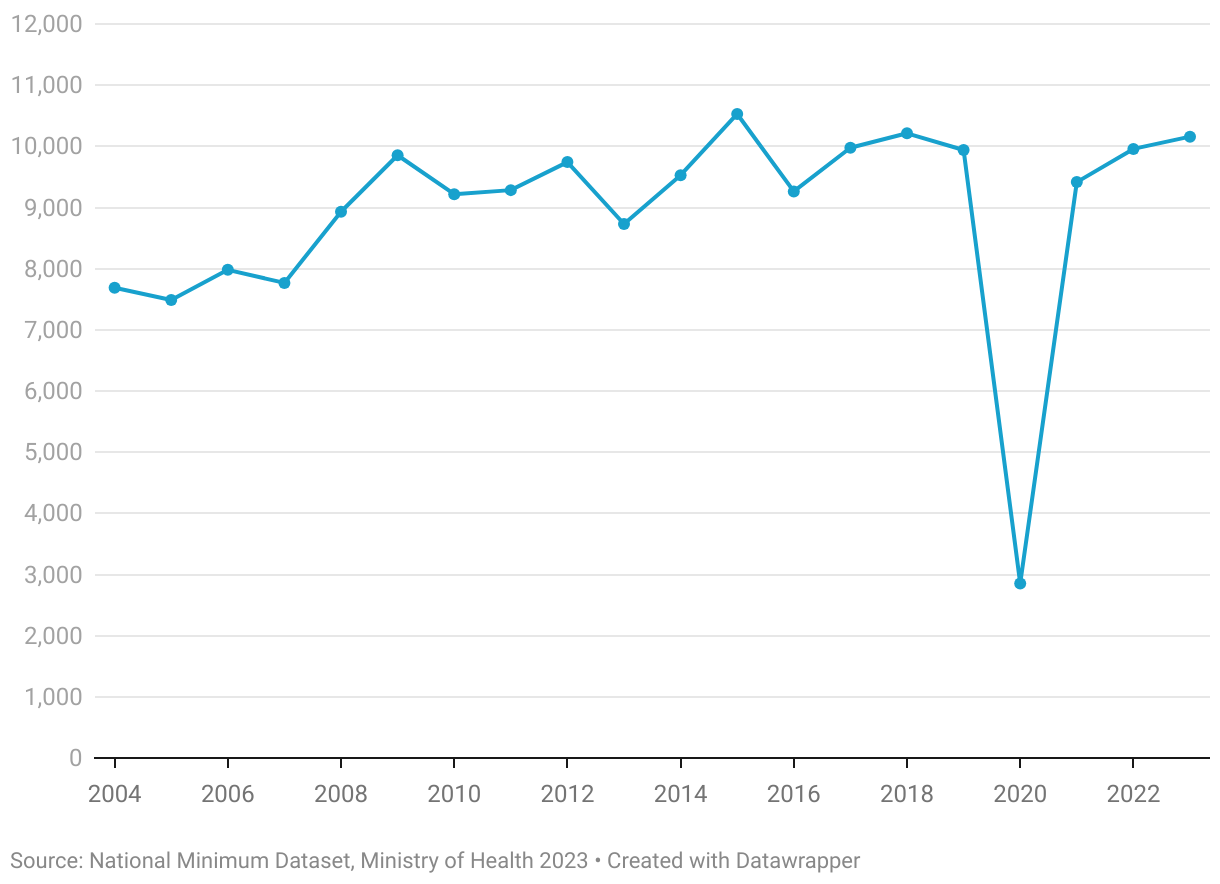 Source: National Minimum Dataset, Ministry of Health 2023Get the dataDownload imageCreated with Datawrapper
