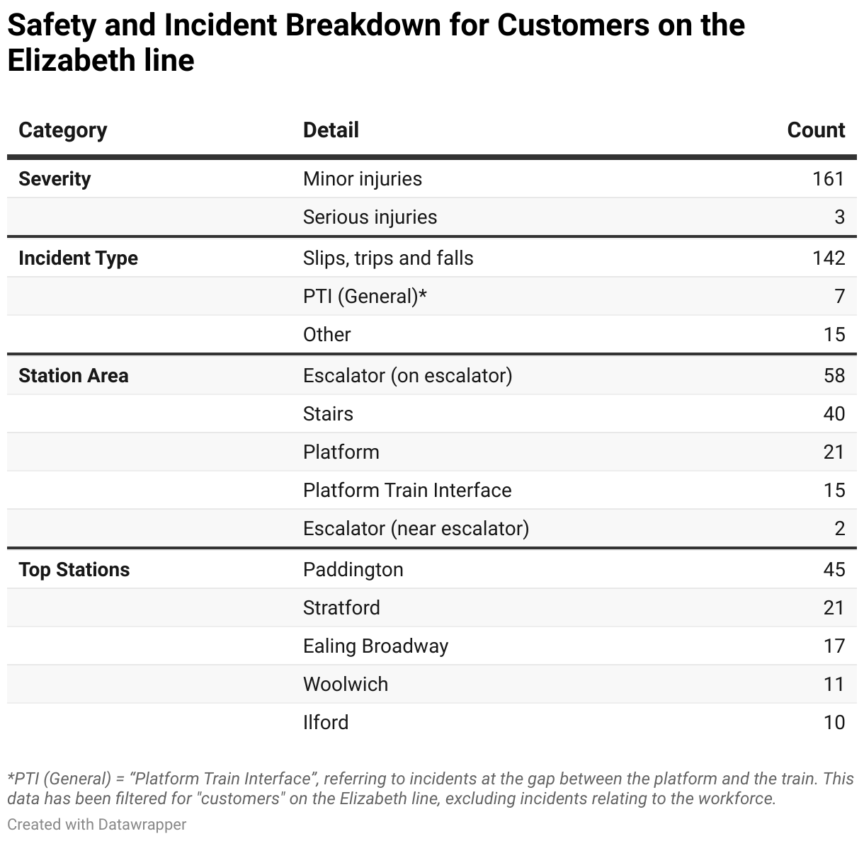Safety and Incident Breakdown for Customers on the Elizabeth line
