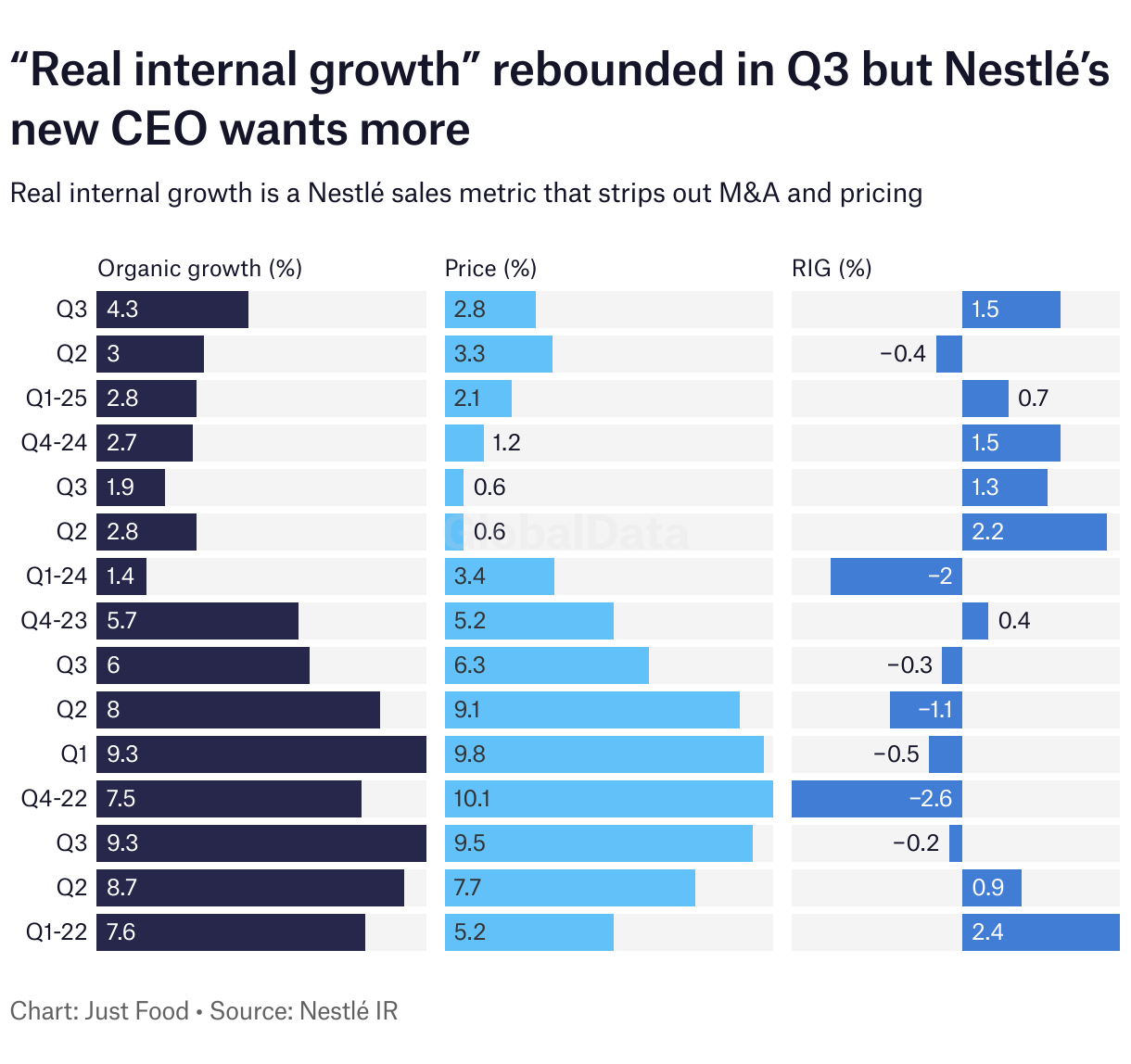 Real internal growth is a Nestlé sales metric that strips out M&A and pricing