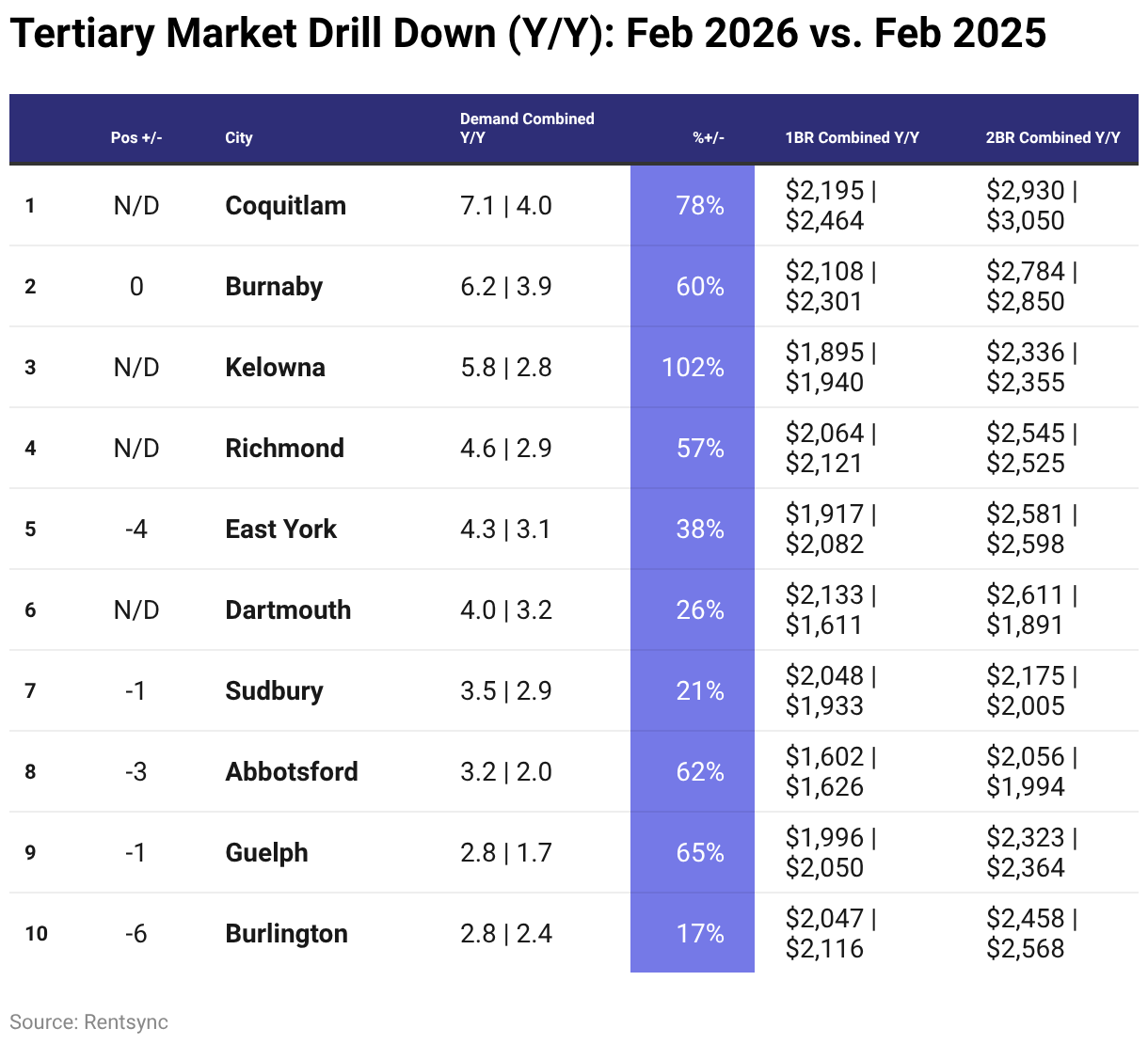 Tertiary market rental demand year over year