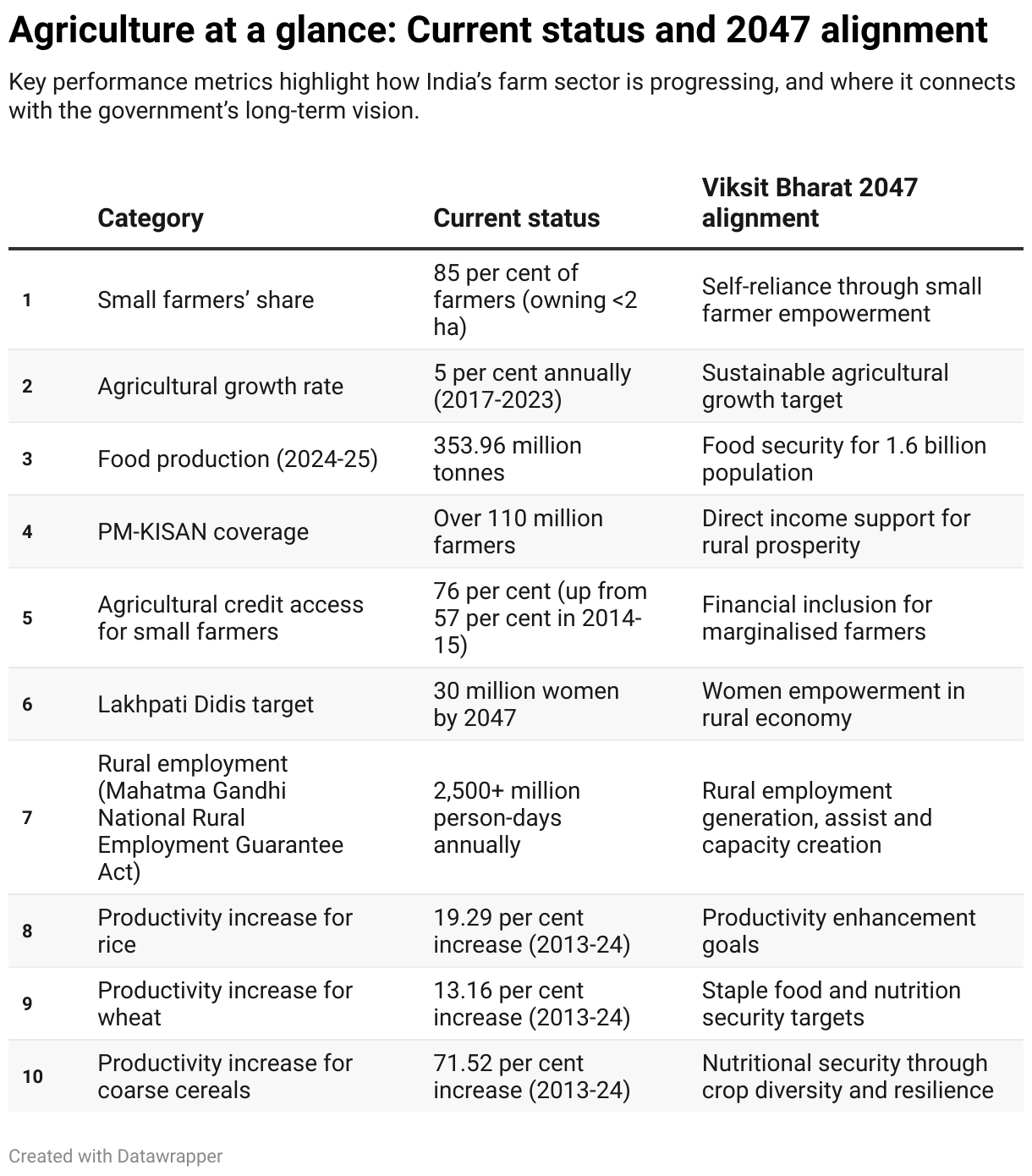 Key performance metrics highlight how India’s farm sector is progressing, and where it connects with the government’s long-term vision.