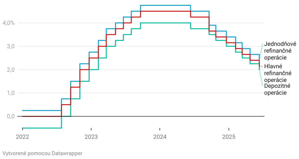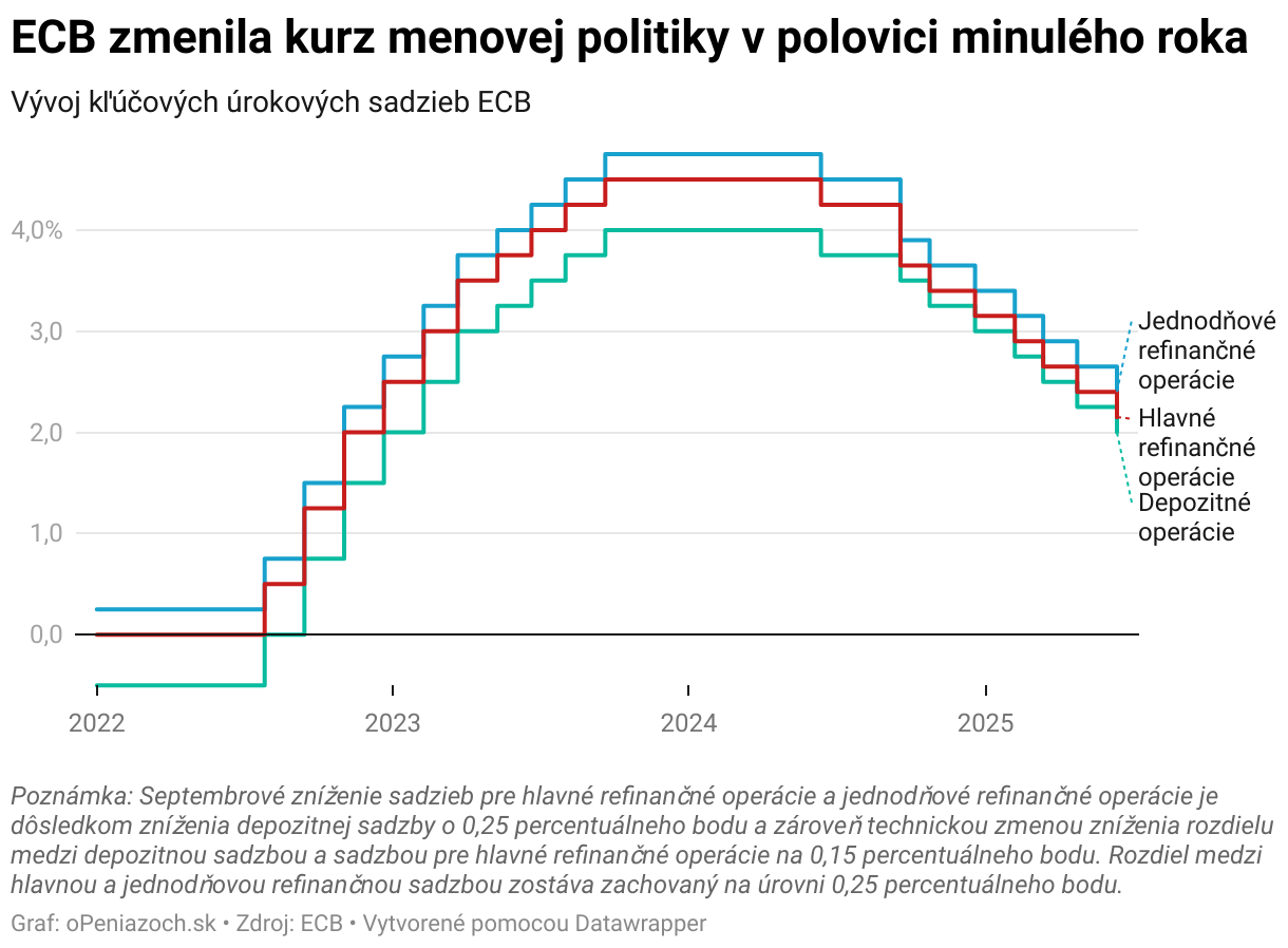 Vývoj kľúčových úrokových sadzieb ECB