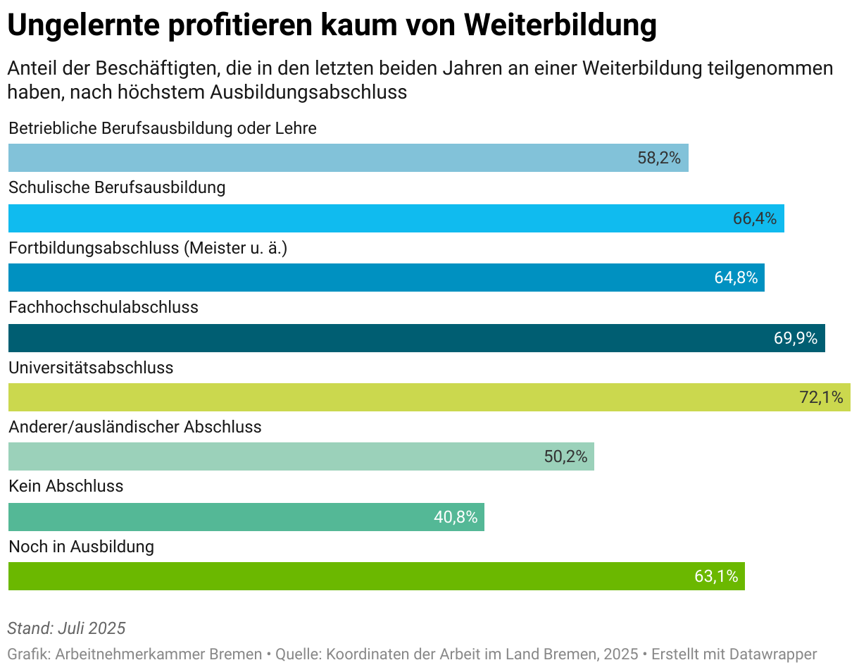 Anteil der Beschäftigten, die in den letzten beiden Jahren an einer Weiterbildung teilgenommen haben, nach höchstem Ausbildungsabschluss