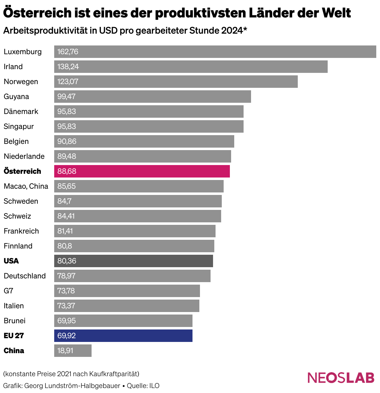 Arbeitsproduktivität in USD pro gearbeiteter Stunde 2024*