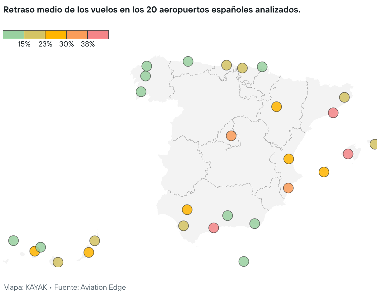 Retraso medio de los vuelos en los 20 aeropuertos españoles analizados.