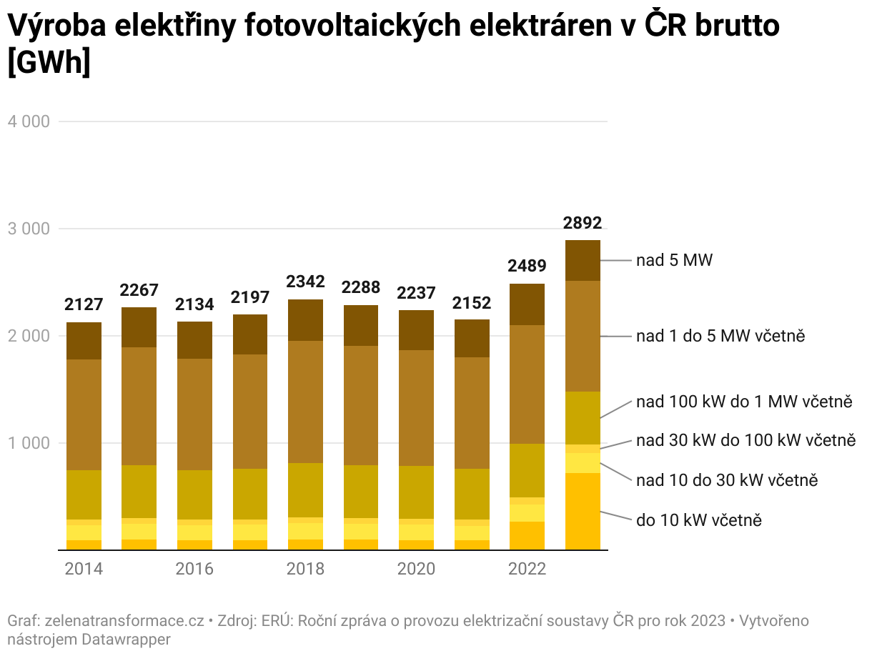 Výroba elektřiny fotovoltaických elektráren v ČR brutto [GWh]