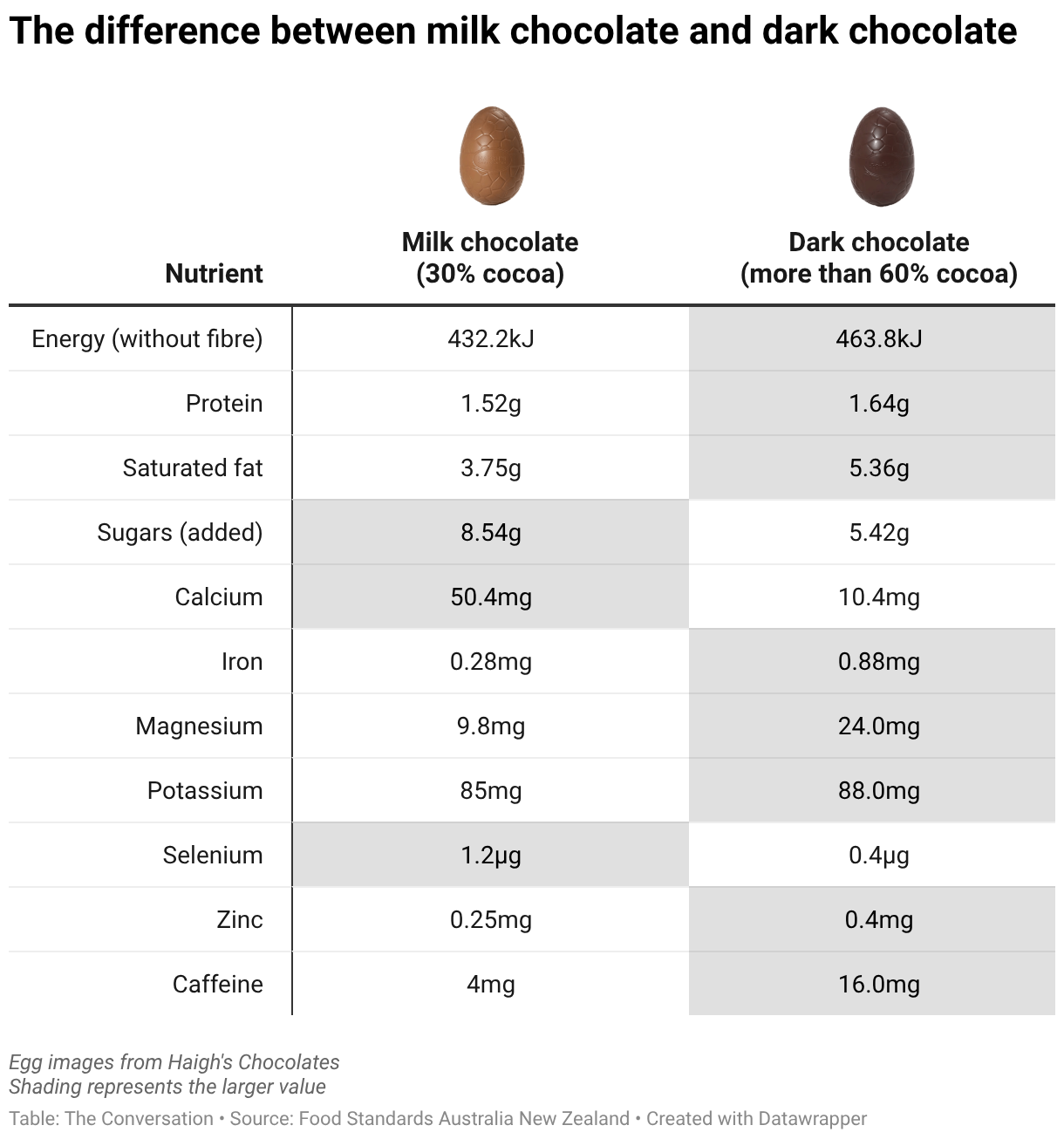 The difference between milk chocolate and dark chocolate