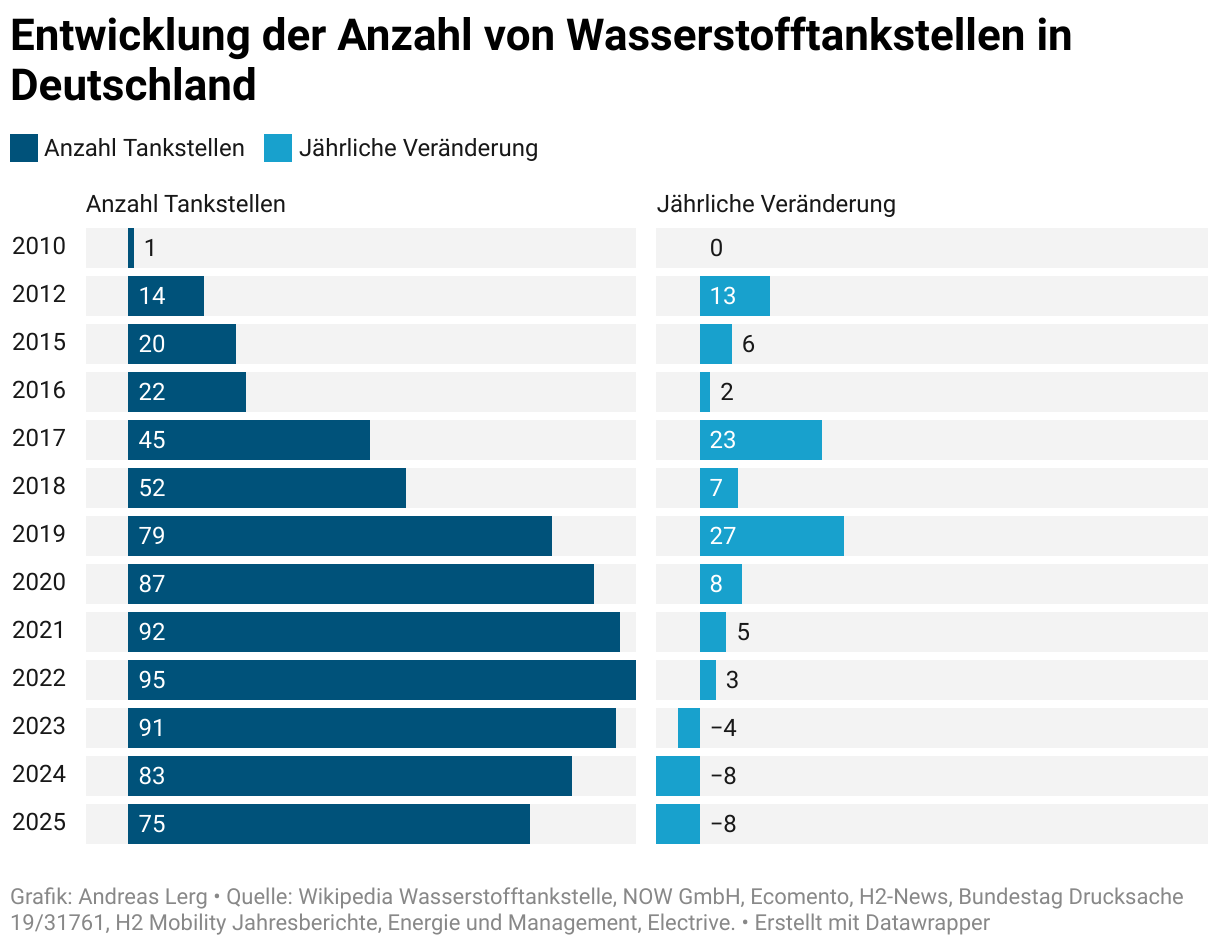 Entwicklung der Anzahl von Wasserstofftankstellen in Deutschland