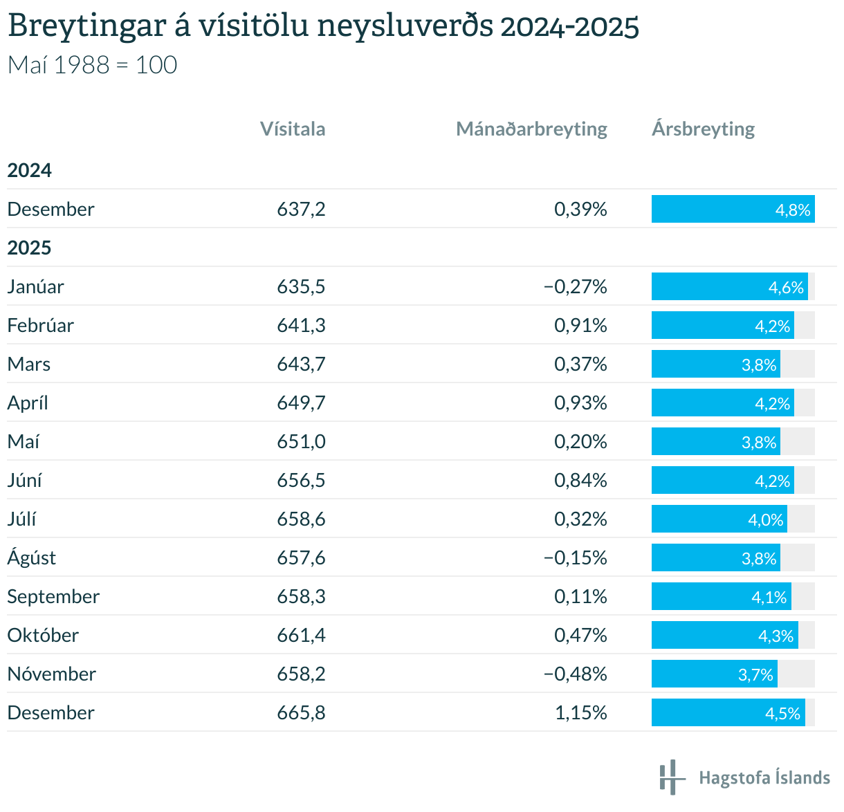 Breytingar á vísitölu neysluverðs 2024-2025