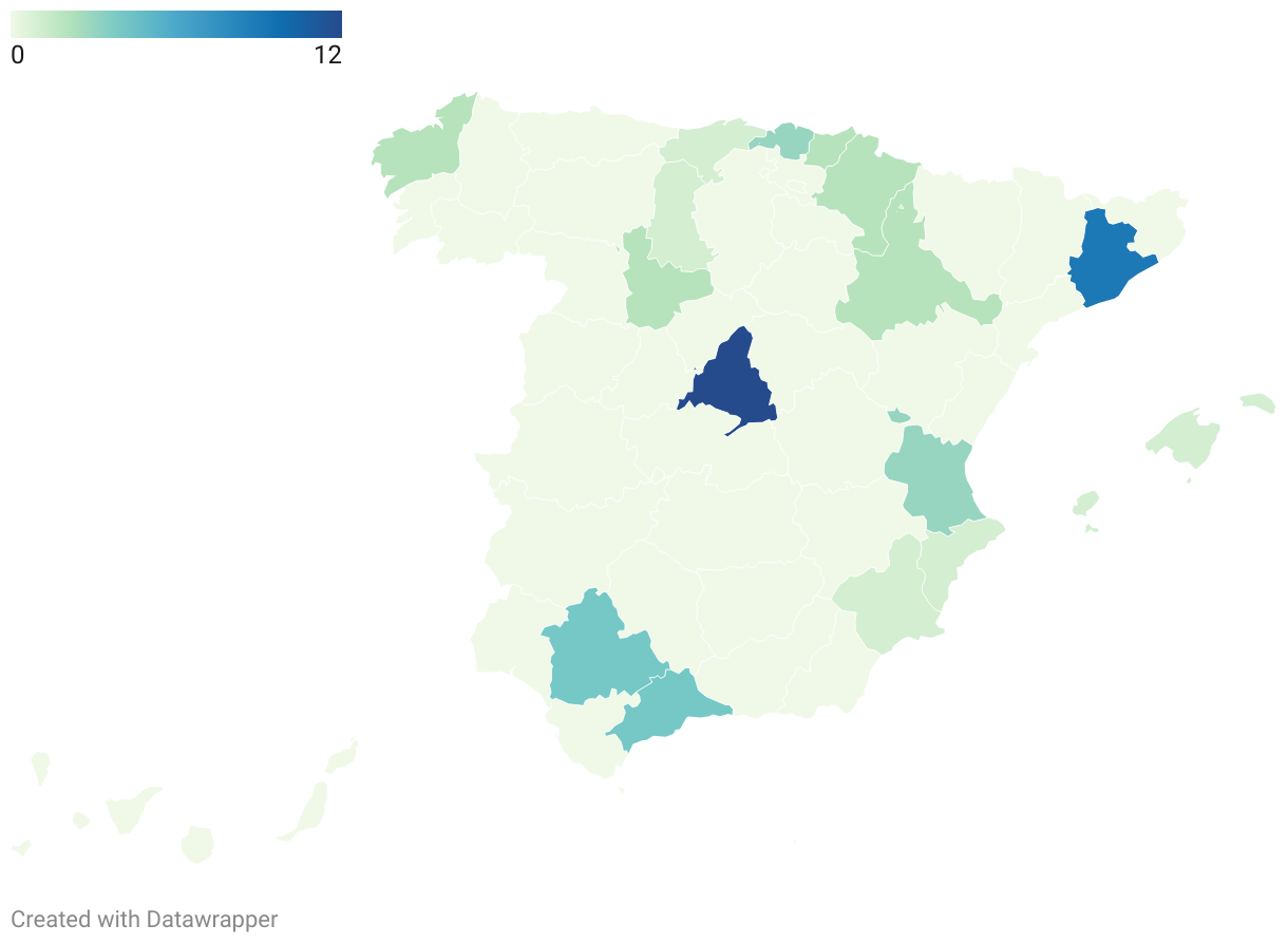 Número de médicos preconocidos por ciudad