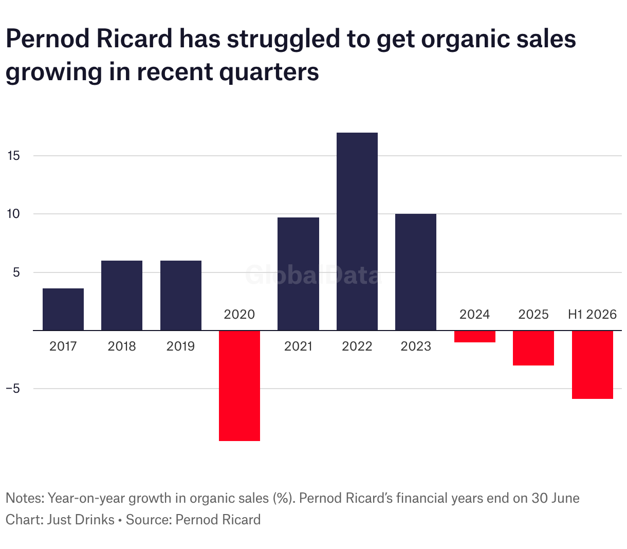 A bar graph showing Pernod Ricard’s organic sales growth