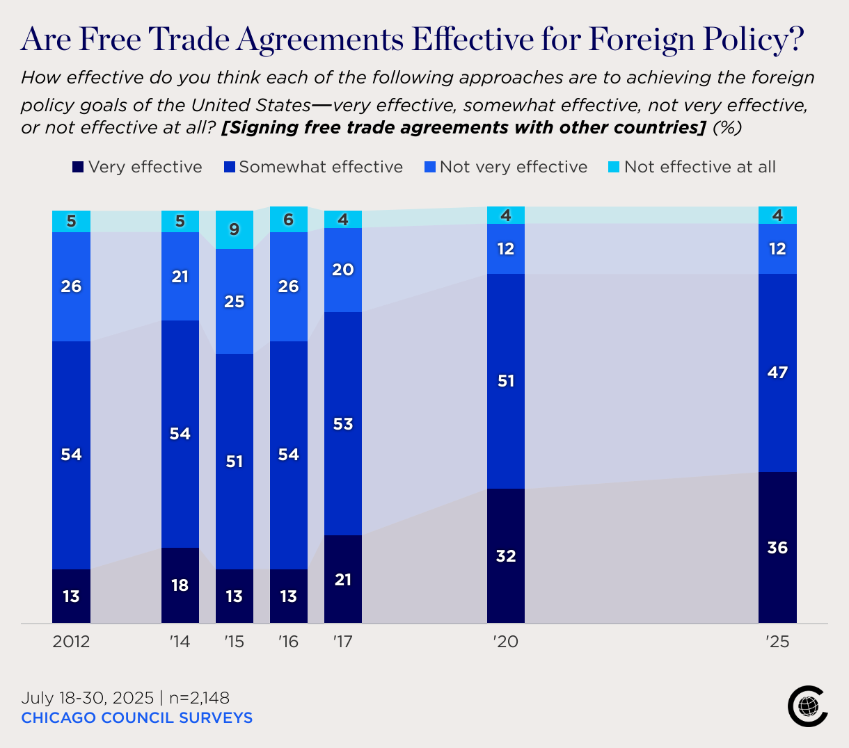 How effective do you think each of the following approaches are to achieving the foreign policy goals of the United States—very effective, somewhat effective, not very effective, or not effective at all? [Signing free trade agreements with other countries] (%)