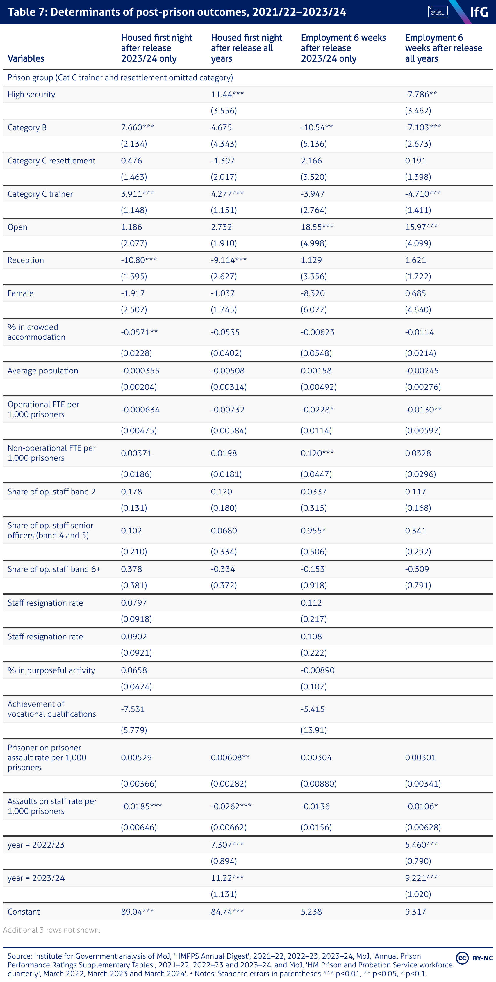 Table 7: Determinants of post-prison outcomes, 2021/22–2023/24