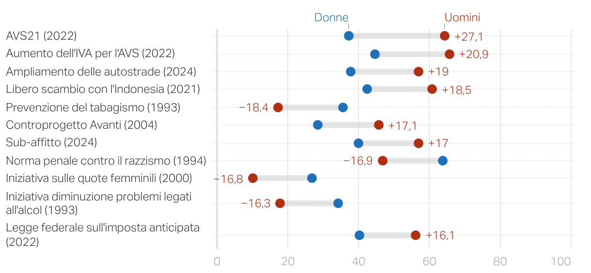 Delle dieci votazioni in cui il divario di genere è più ampio, sei si sono svolte negli ultimi quattro anni.