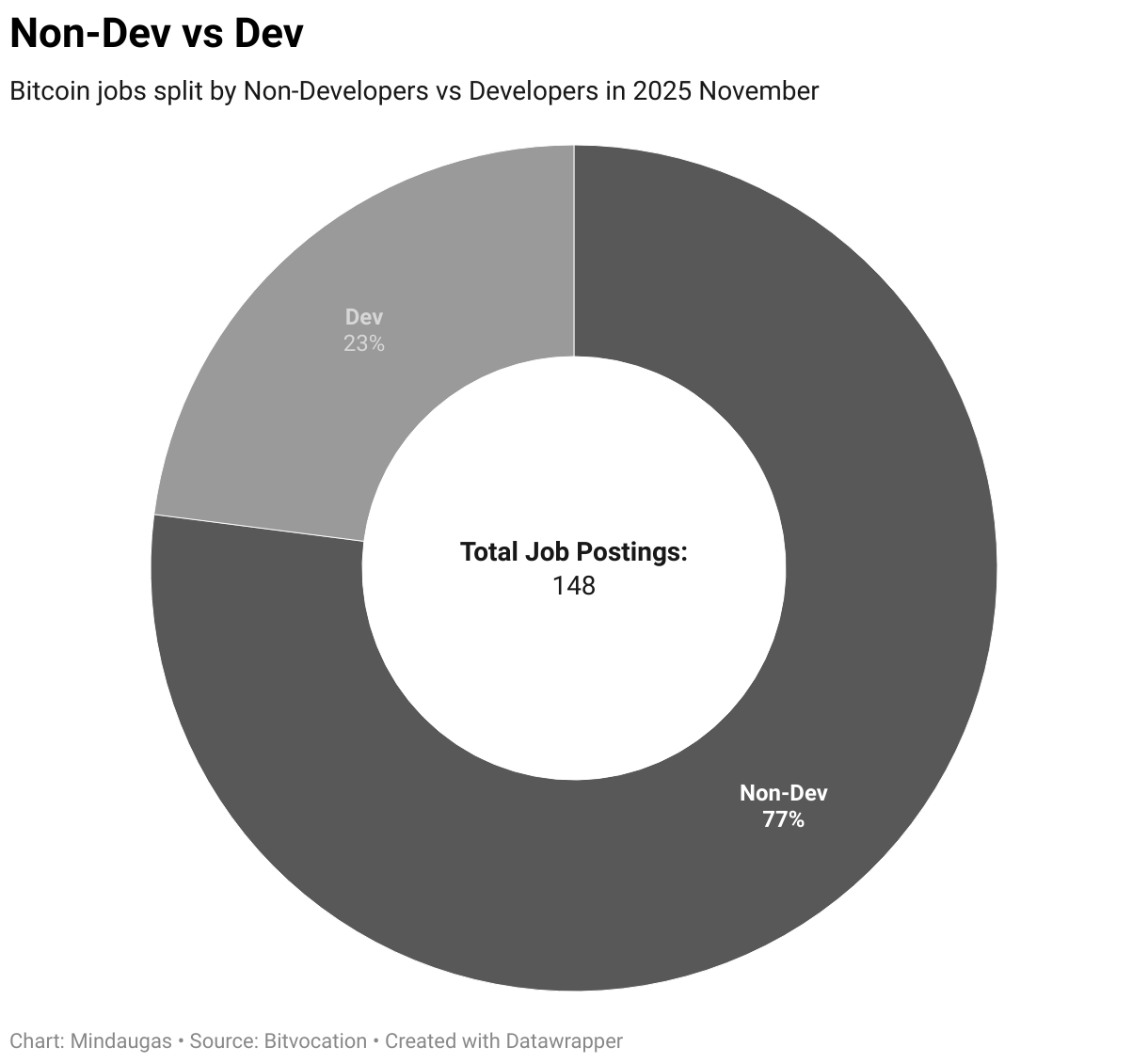 Bitcoin jobs split by Non-Developers vs Developers in 2025 November