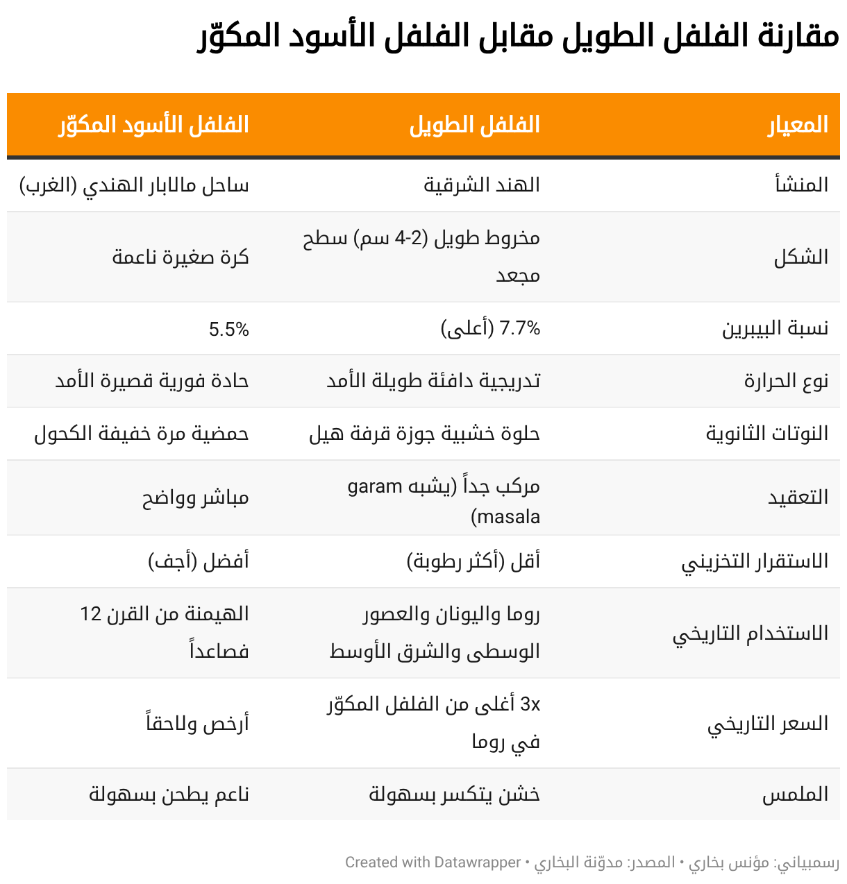 مقارنة الفلفل الطويل مقابل الفلفل الأسود المكوّر