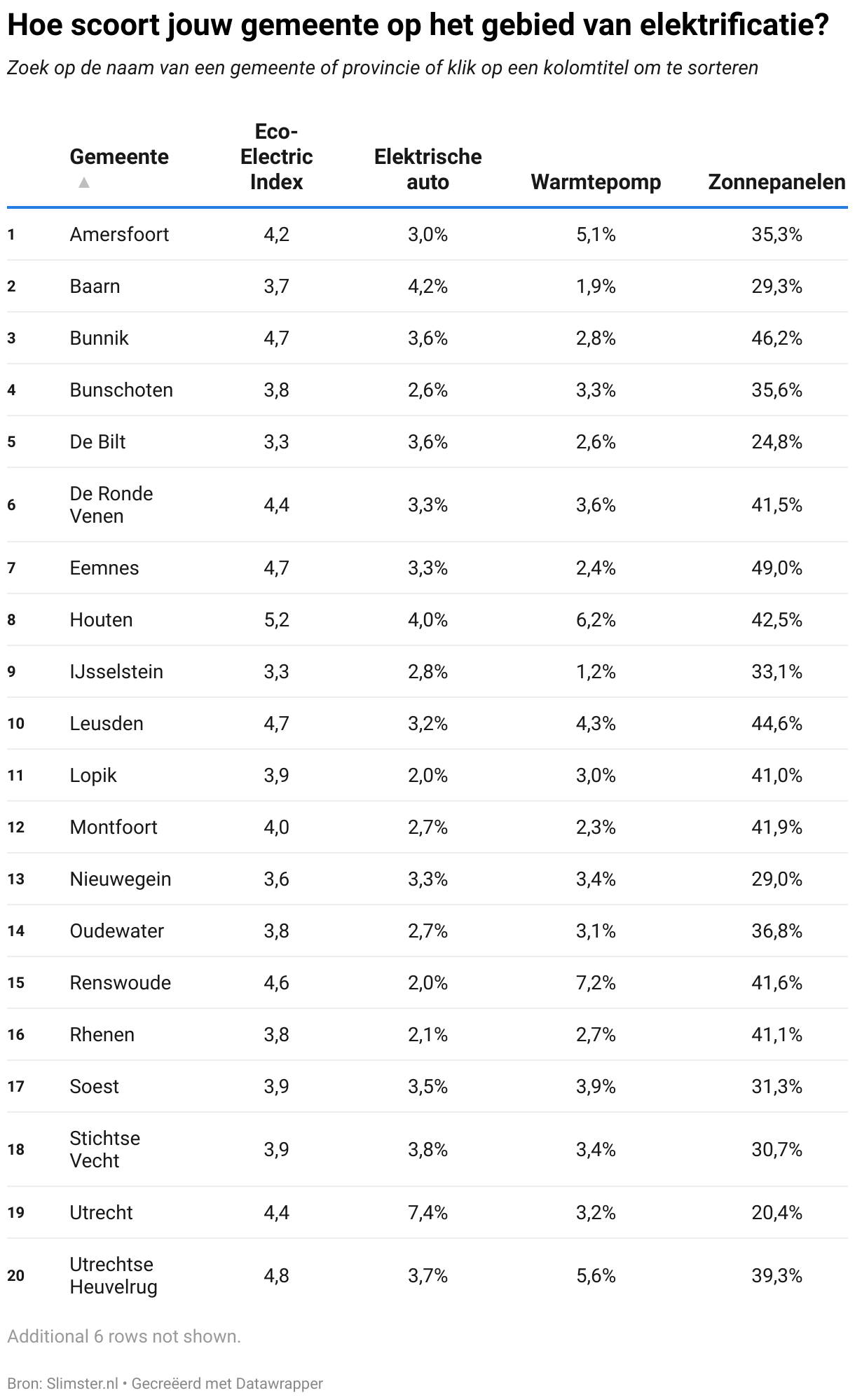 Zoek op de naam van een gemeente of provincie of klik op een kolomtitel om te sorteren