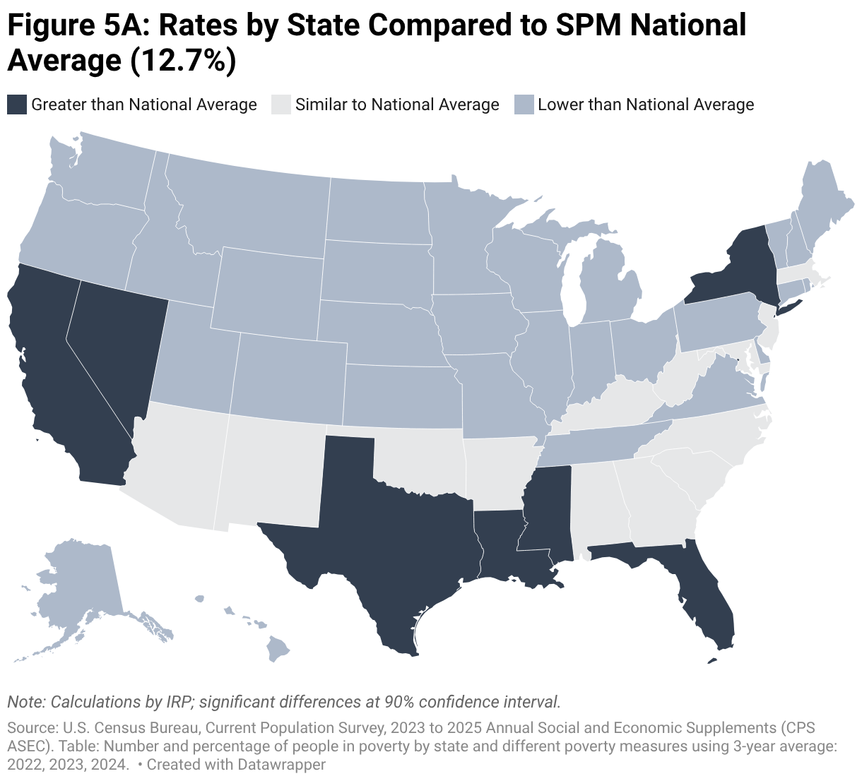 Figure 5A: Rates by State Compared to SPM National Average (12.7%)