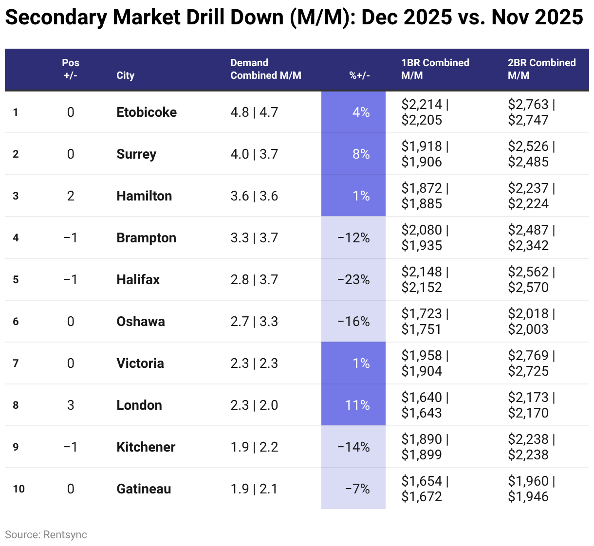 Secondary Market Drill Down (M/M): Dec 2025 vs. Nov 2025