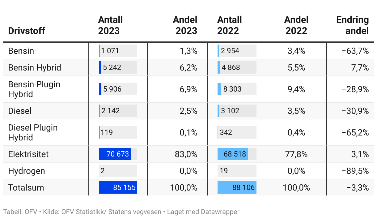 Grafikk: OFVKilde: OFV Statistikk/ Statens vegvesenLast ned dataLast ned bildeLaget med Datawrapper