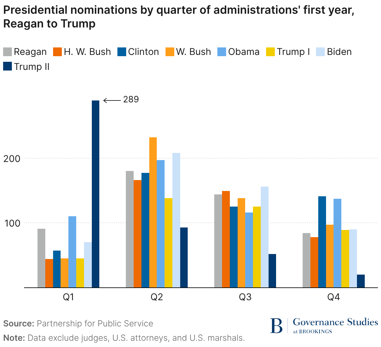 Presidential nominations by quarter of administrations' first year, Reagan to Trump