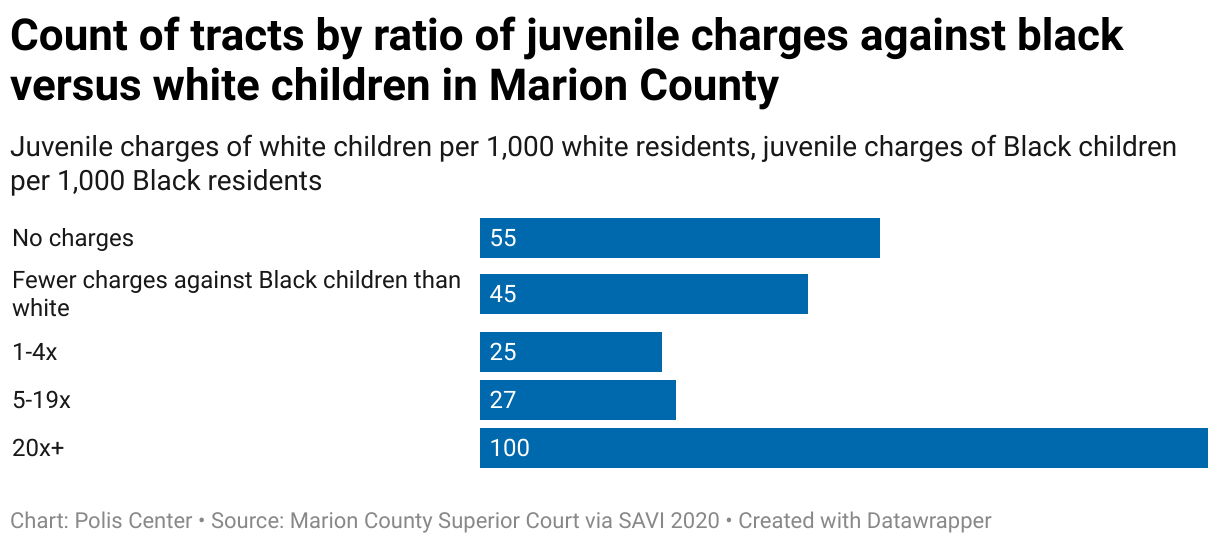 Juvenile charges of white children per 1,000 white residents, juvenile charges of Black children per 1,000 Black residents