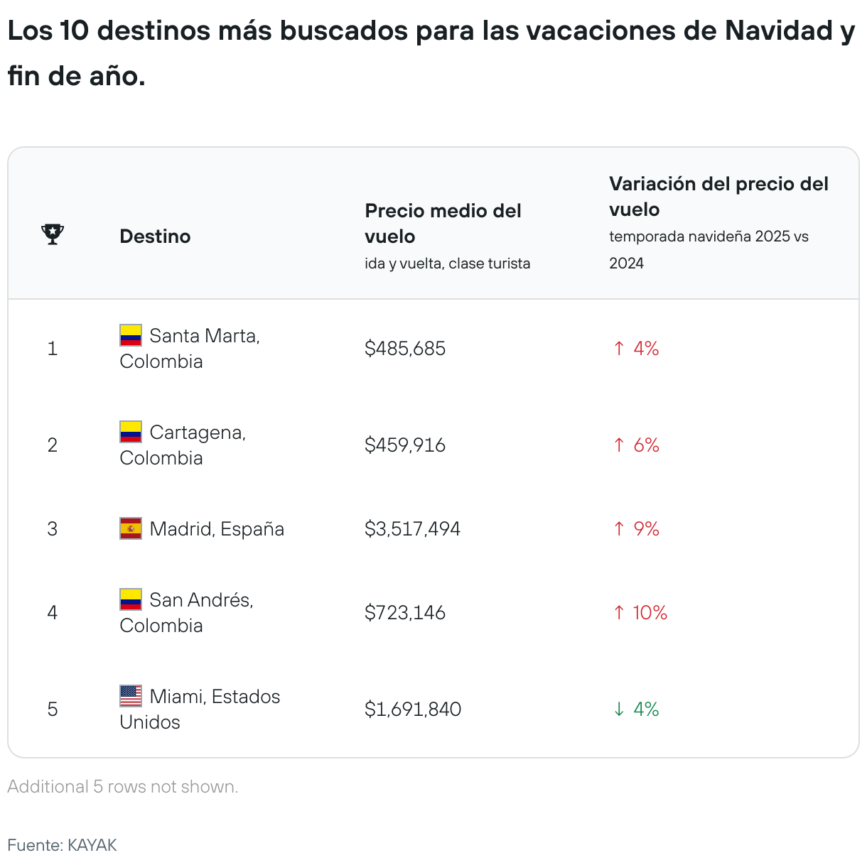 Los 10 destinos más buscados para las vacaciones de Navidad y fin de año.