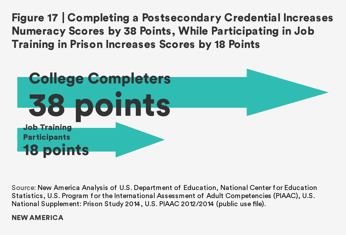 Figure 17 | Completing a Postsecondary Credential Increases Numeracy Scores by 38 Points, While Participating in Job Training in Prison Increases Scores by 18 Points