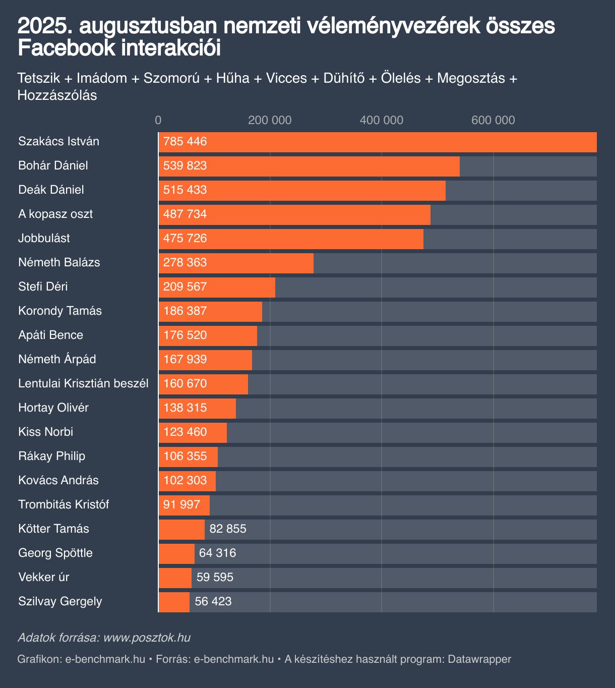 2025. augusztusban nemzeti véleményvezérek összes Facebook interakciói