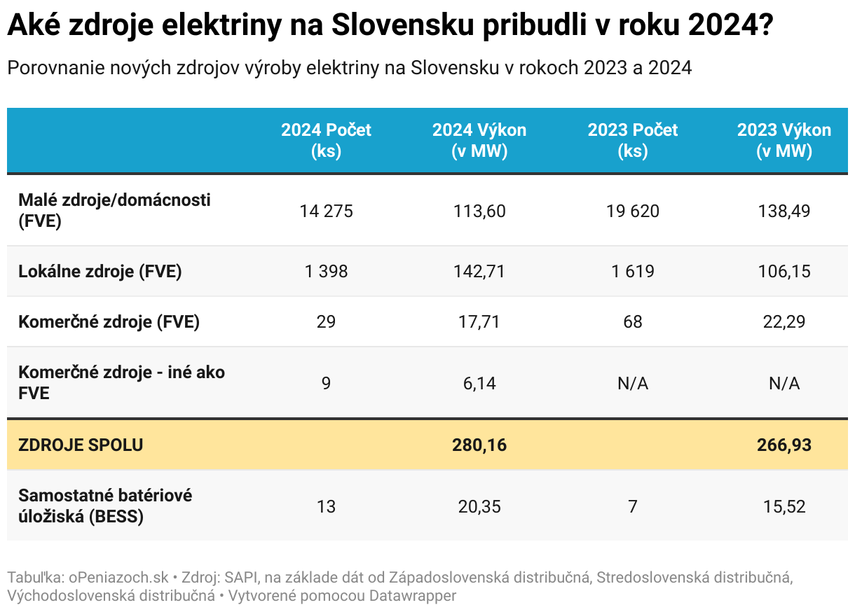 Porovnanie nových zdrojov výroby elektriny na Slovensku v rokoch 2023 a 2024