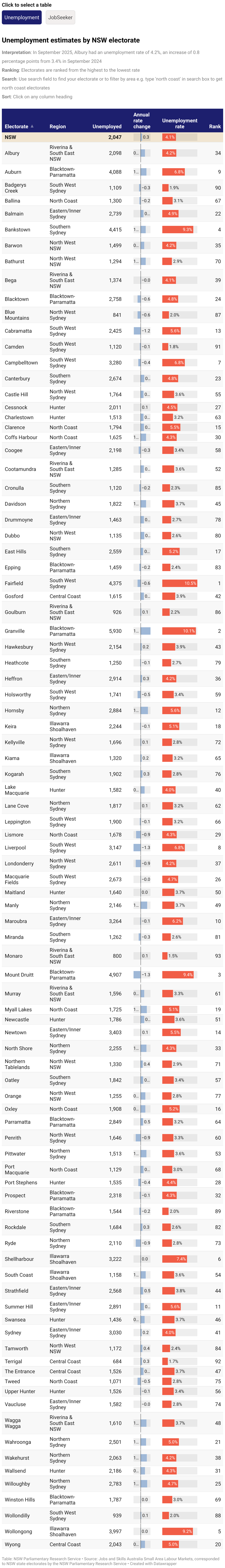 Unemployment estimates by NSW electorate