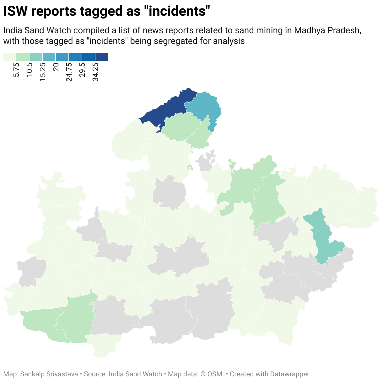 India Sand Watch compiled a list of news reports related to sand mining in Madhya Pradesh, with those tagged as "incidents" being segregated for analysis