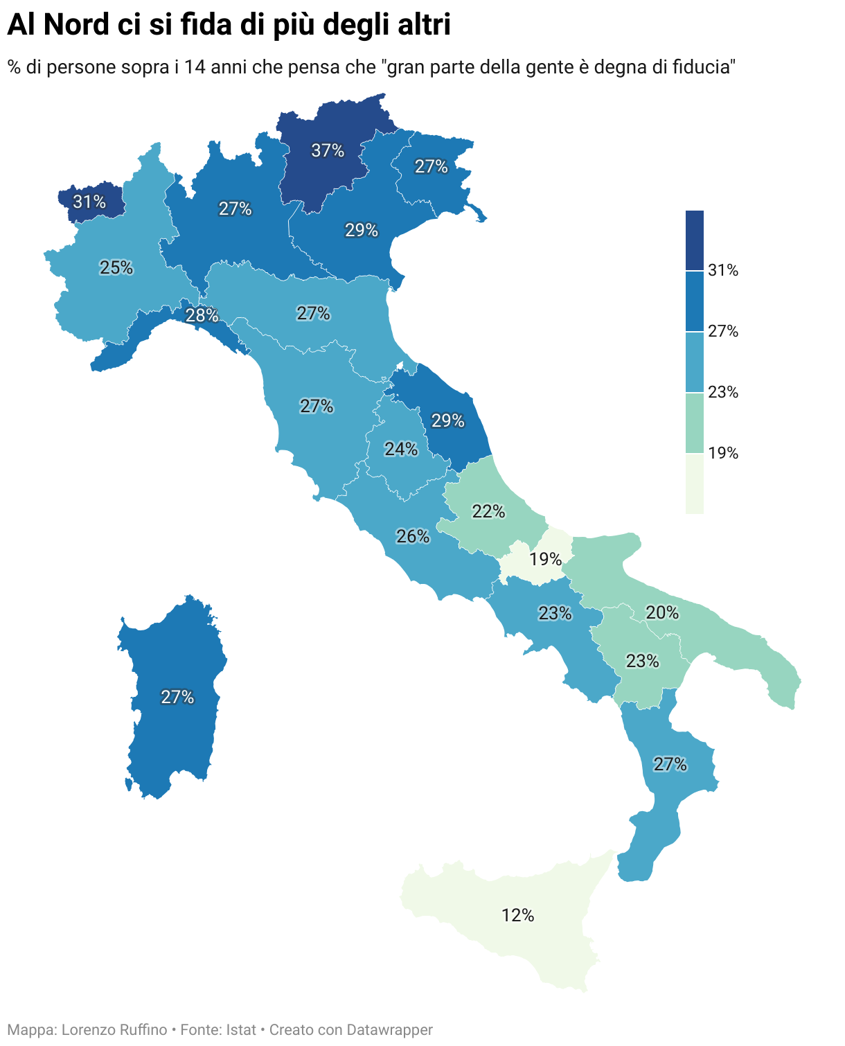 % di persone sopra i 14 anni che pensa che "gran parte della gente è degna di fiducia"