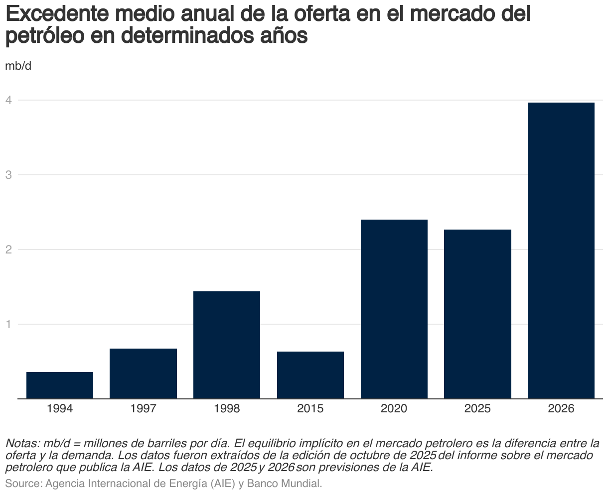 Excedente medio anual de la oferta en el mercado del petróleo en determinados años
