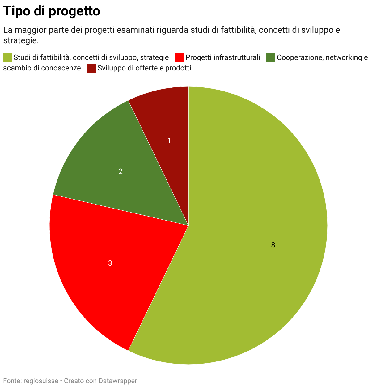 La maggior parte dei progetti esaminati riguarda studi di fattibilità , concetti di sviluppo e strategie.