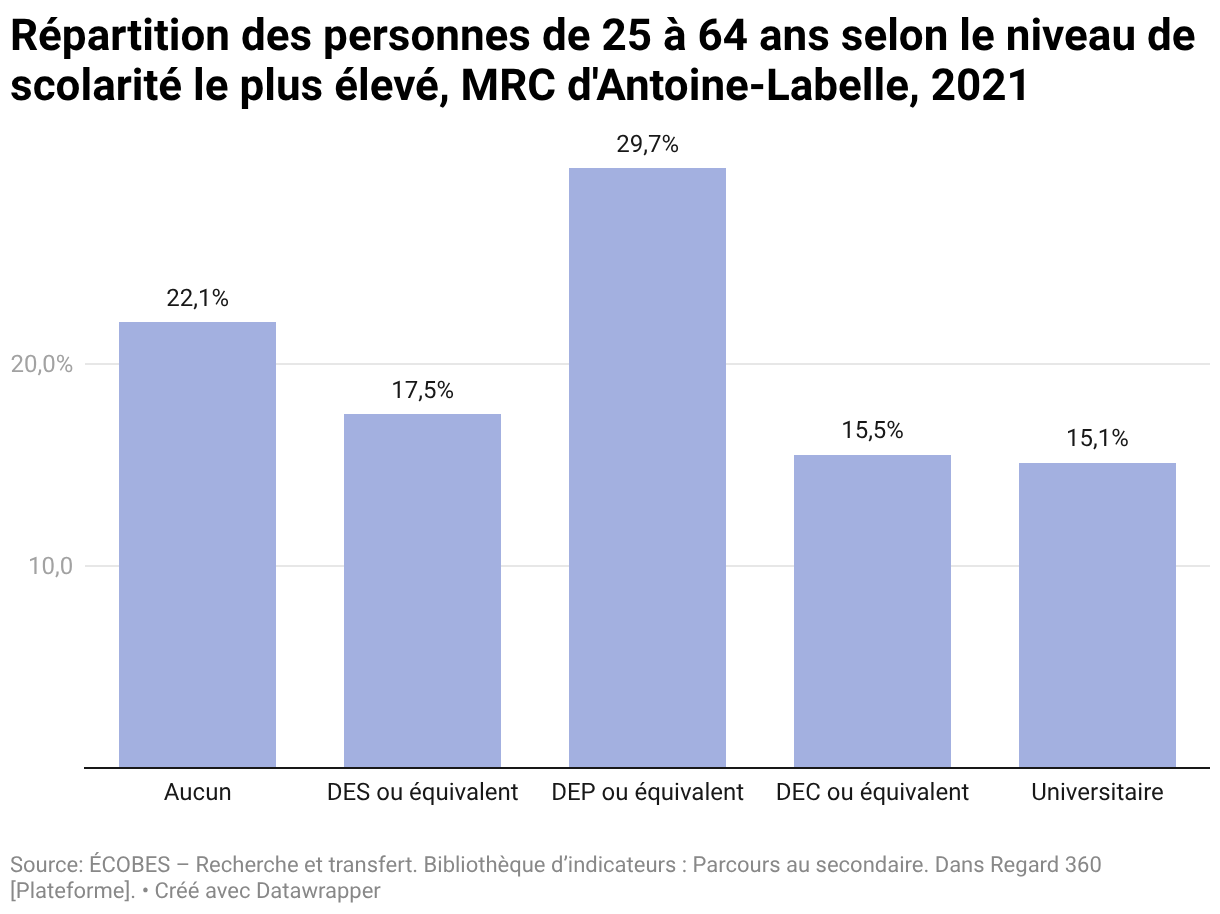 Répartition des personnes de 25 à 64 ans selon le niveau de scolarité le plus élevé, MRC d'Antoine-Labelle, 2021