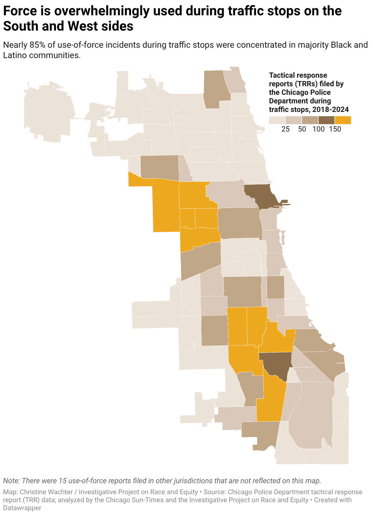 Nearly 85% of use-of-force incidents during traffic stops were concentrated in majority Black and Latino communities.