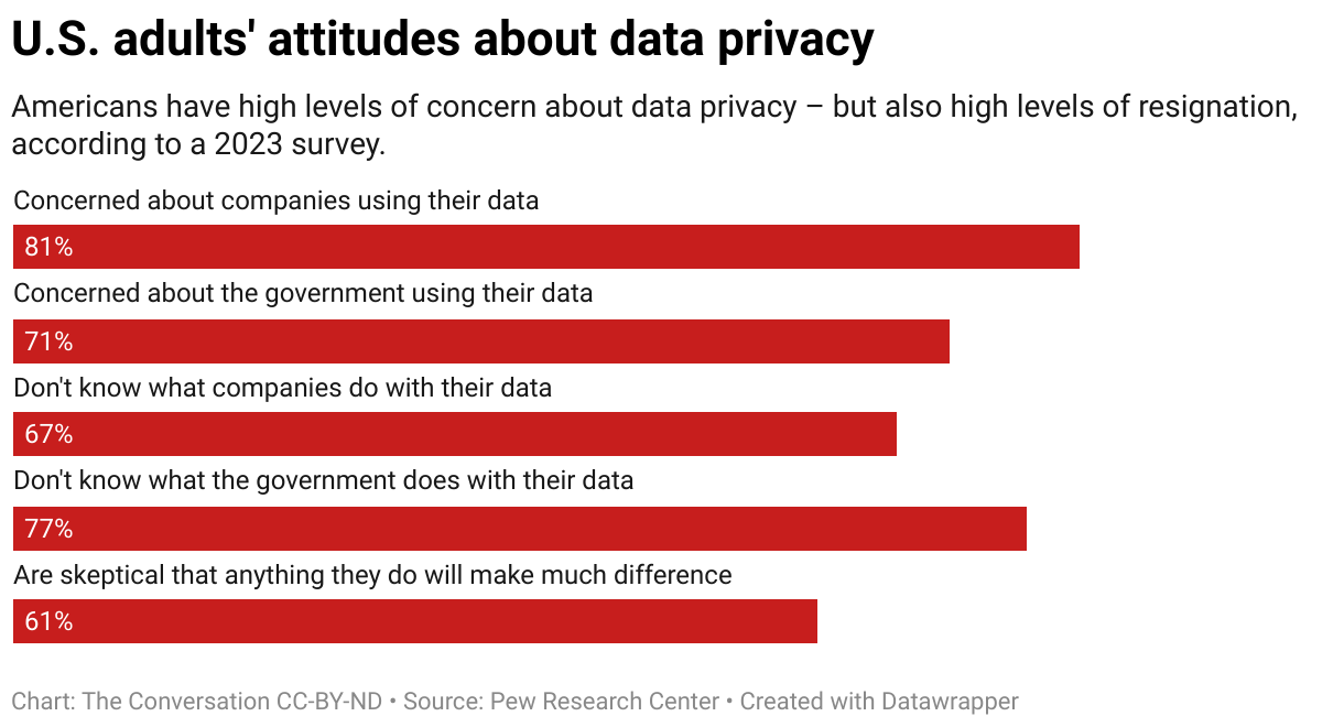 Americans have high levels of concern about data privacy – but also high levels of resignation, according to a 2023 survey.