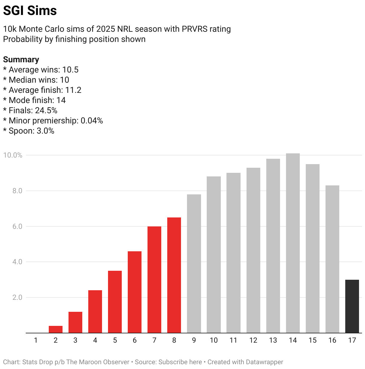 10k Monte Carlo sims of 2025 NRL season with PRVRS rating