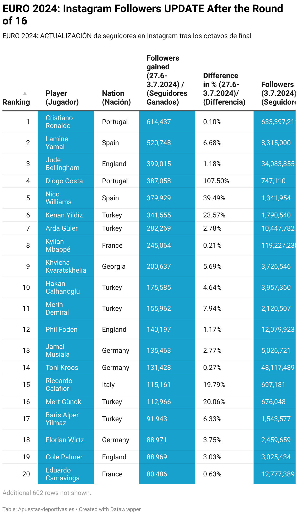 EURO 2024: ACTUALIZACIÓN de seguidores en Instagram tras los octavos de final