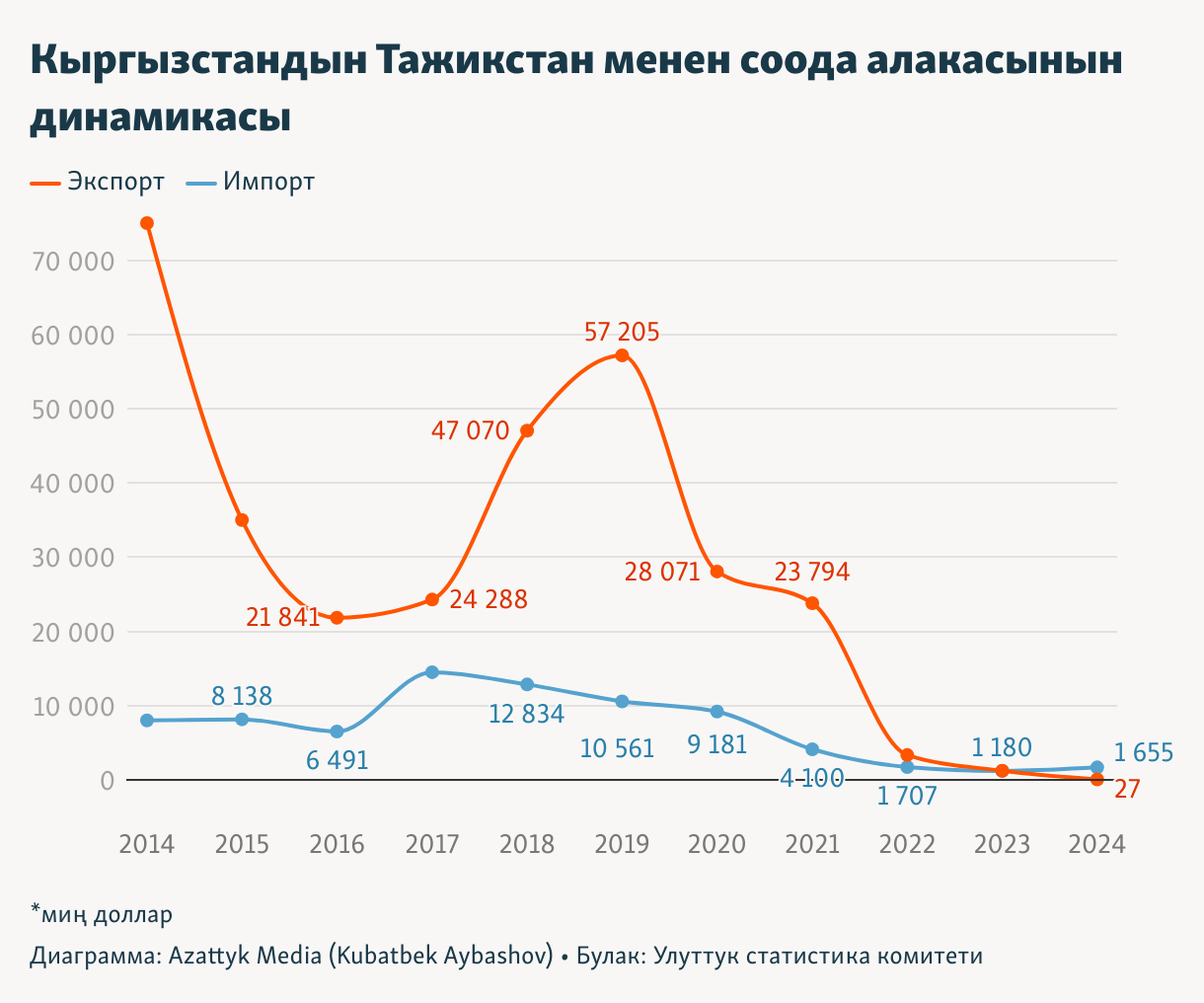 Кыргызстандын Тажикстан менен соода алакасынын динамикасы