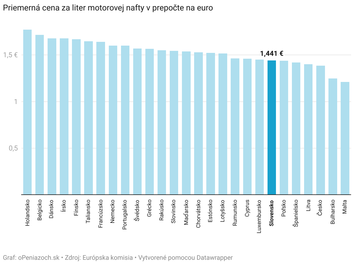 Priemerná cena za liter motorovej nafty v prepočte na euro