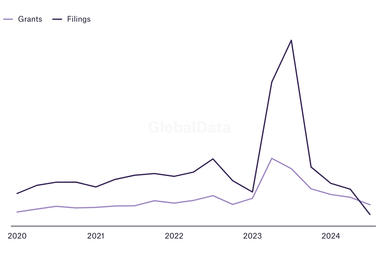 Patenting activity related to environmental sustainability in the global medical industry, Q1 2020 – Q3 2024 (Total patent filings and grants)
