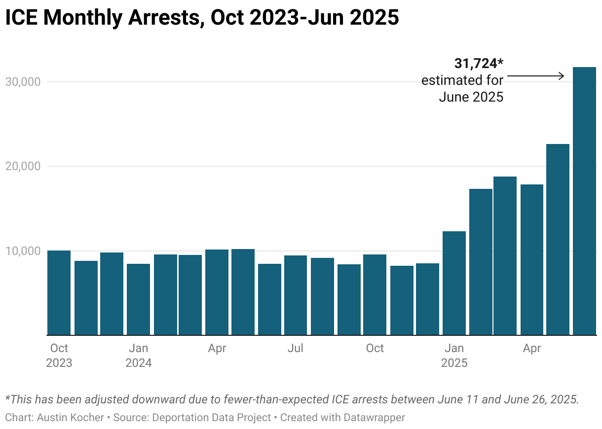 ICE Monthly Arrests, Oct 2023-Jun 2025