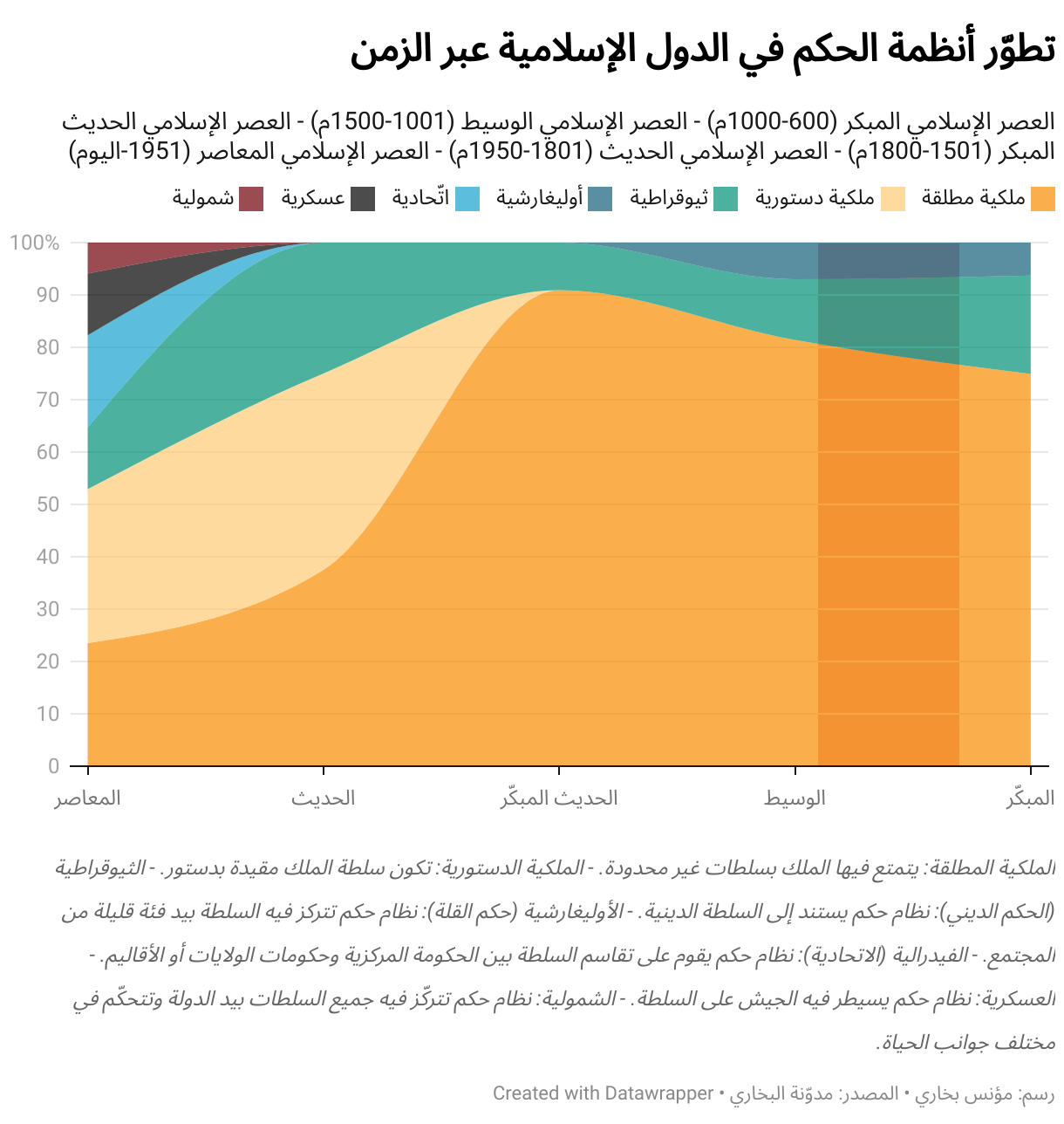 العصر الإسلامي المبكر (600-1000م) - العصر الإسلامي الوسيط (1001-1500م) - العصر الإسلامي الحديث المبكر (1501-1800م) - العصر الإسلامي الحديث (1801-1950م) - العصر الإسلامي المعاصر (1951-اليوم)