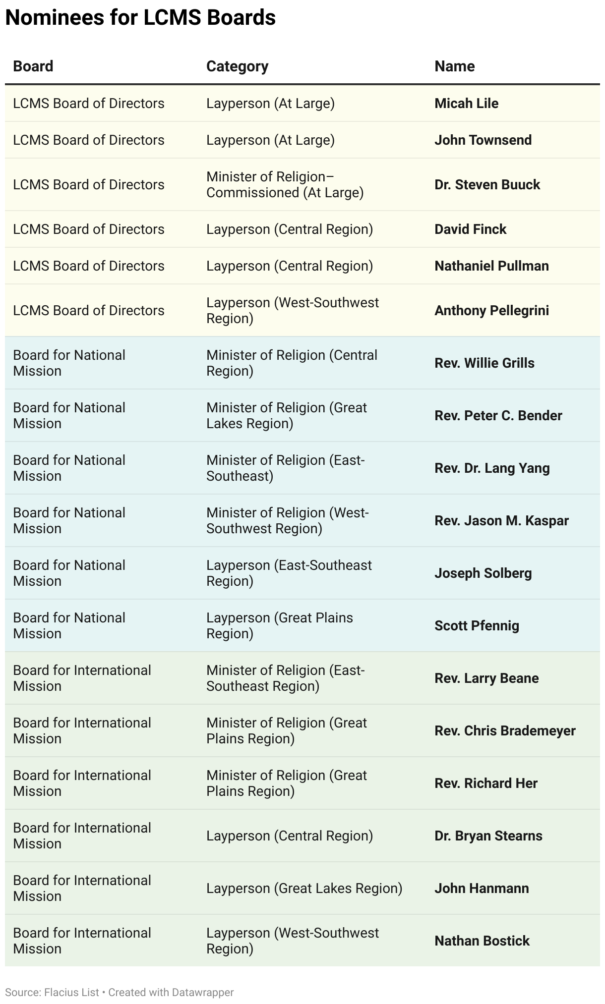 Nominees for LCMS Boards
