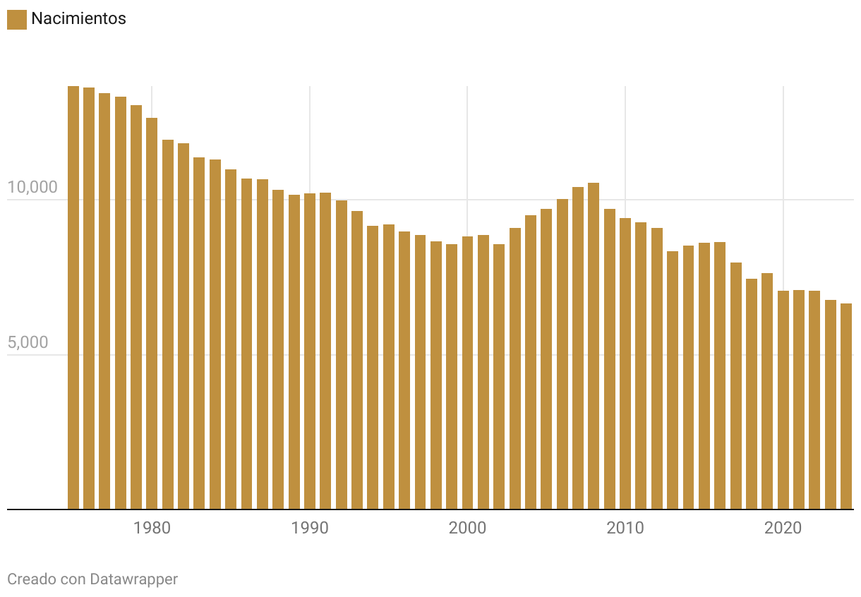 Evolución de la natalidad en Granada desde 1975