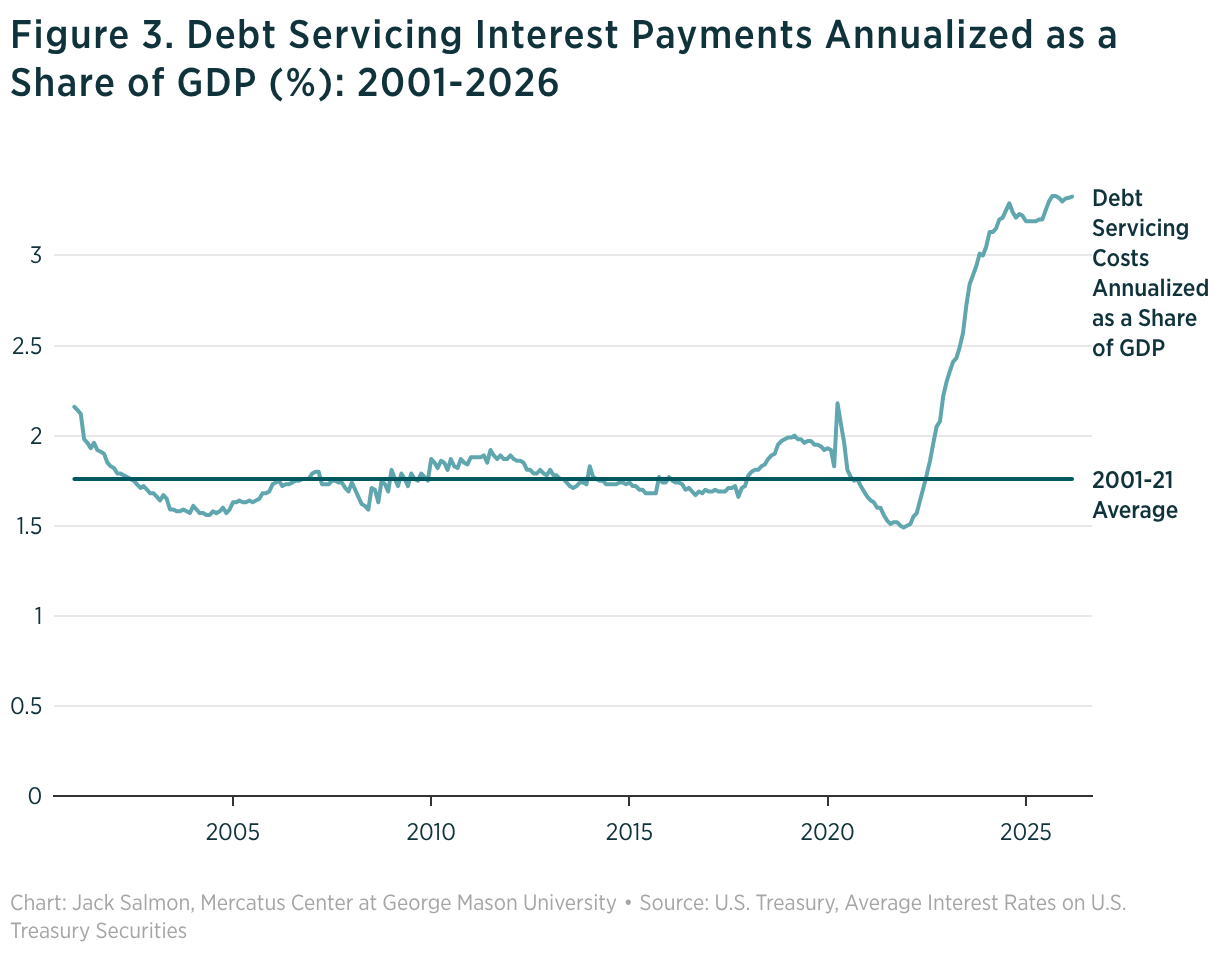 Figure 3. Debt Servicing Interest Payments Annualized as a Share of GDP (%): 2001-2026