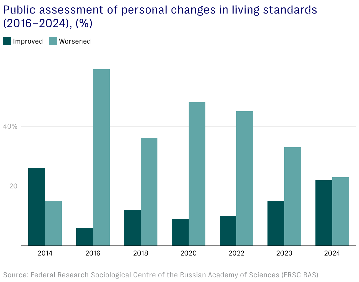 Public assessment of personal changes in living standards (2016–2024), (%)