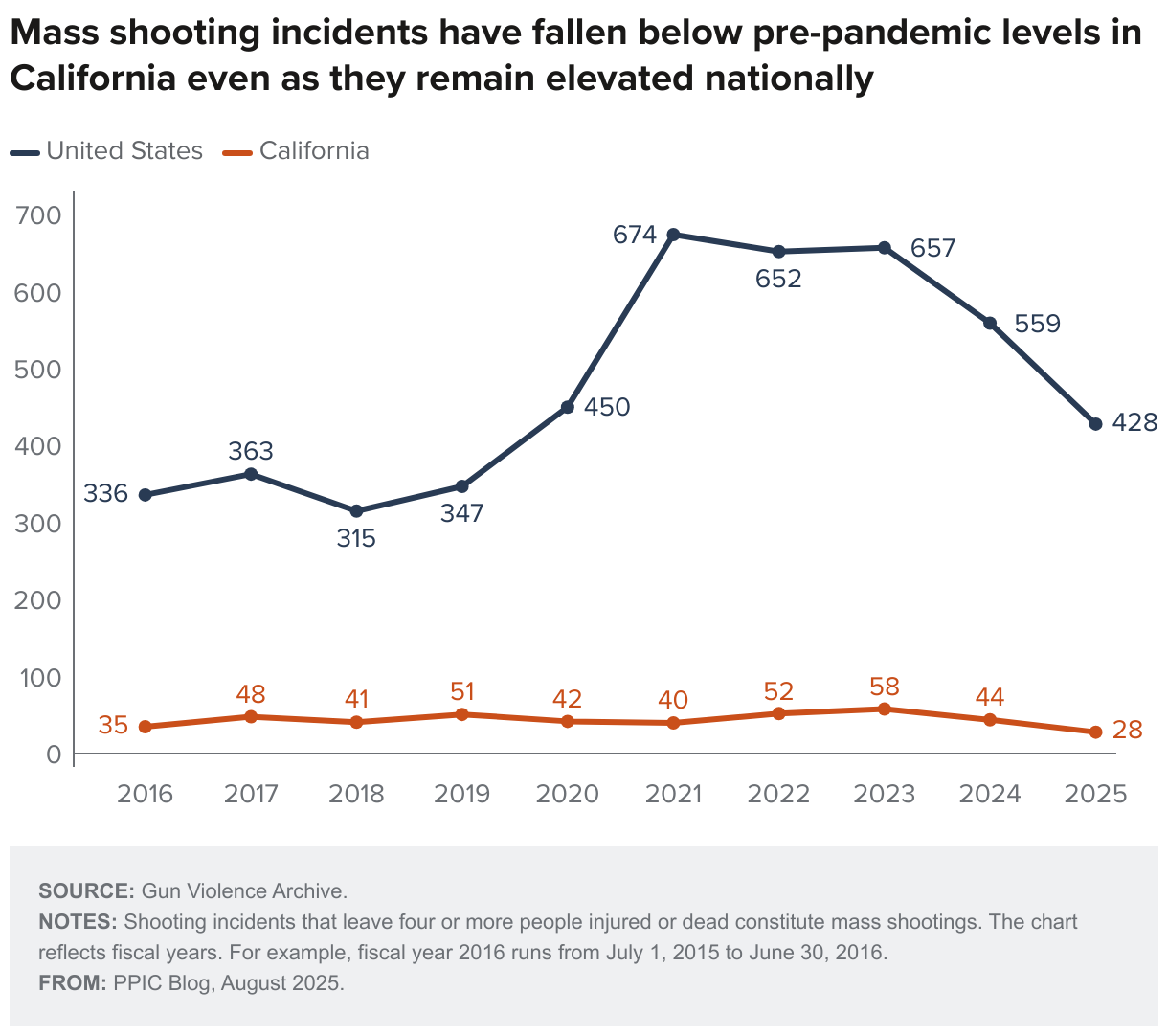 Mass shooting incidents have fallen below pre-pandemic levels in California even as they remain elevated nationally